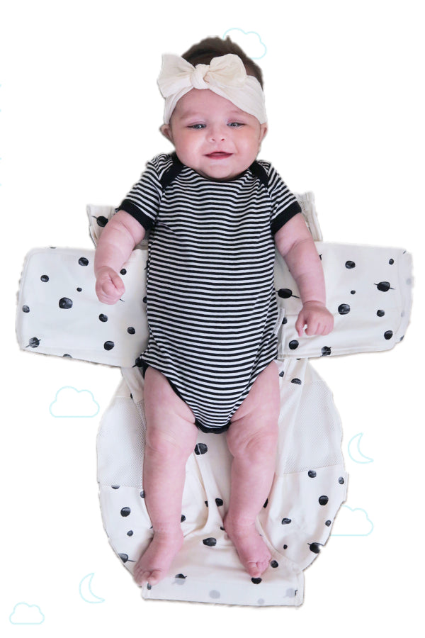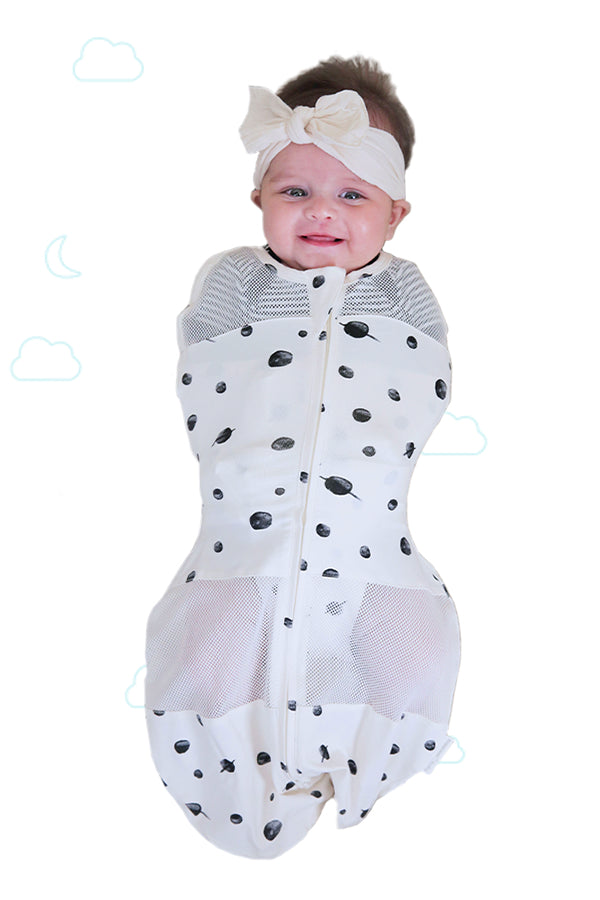 Sleepea’s inner flaps give babies the womb-like embrace they love while keeping even mini escape artists securely wrapped and preventing the wild arm movements and nose whacks that can startle them awake. And, unlike most baby swaddles, Sleepea allows for safe arms-out swaddling,** making it the perfect transitional swaddle for babies that are almost ready to wave bye-bye to their swaddling days.