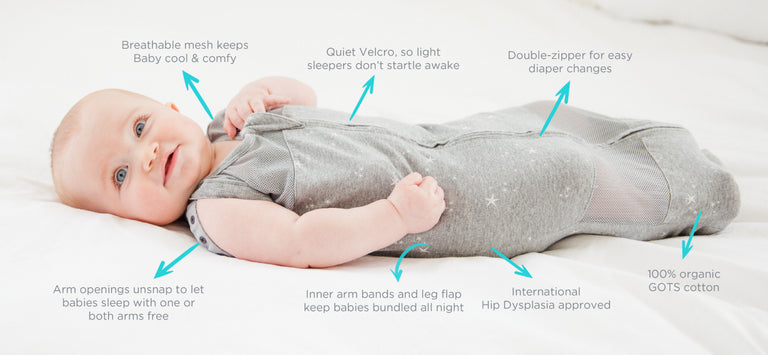 Because Sleepea is made with soft organic cotton and breathable mesh panels,* you can rest assured that your little one will not only sleep comfortably all night long (no matter the season), but they’ll snooze safely, too. After all, Sleepea was designed by renowned pediatrician Dr. Harvey Karp, the world’s leading swaddling expert.