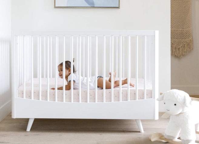 Our crib is made from sustainable, 100% New Zealand Pine with hidden hardware and sealed with a non-toxic, water-based finish. Lola meets or exceeds all safety regulations and standards. Plus, four adjustable mattress heights allow parents to adapt the Lola Crib as their little ones get bigger (and braver…and bouncier!). As your child grows, Lola’s Conversion Kit makes it simple to give your tyke the “big kid” independence they crave.