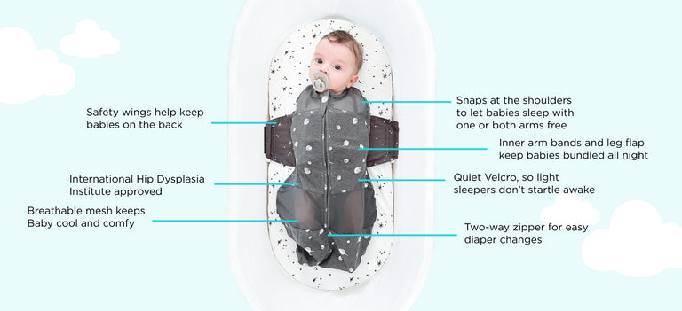Not only does swaddling mimic the snug embrace that sleeping babies love in the womb, it also prevents wild hand movement that can startle little ones awake, keeping your baby safe, happy, and well-rested all night long.