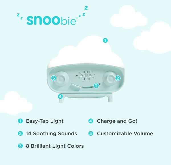 - On-the-go soother. SNOObie’s rechargeable battery lasts all night, making SNOObie a parent’s go-anywhere friend for around-the-house feeds, car naps, living room camp-outs…or use wherever you need comforting sound or light.